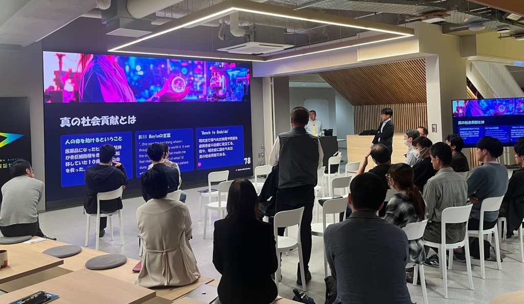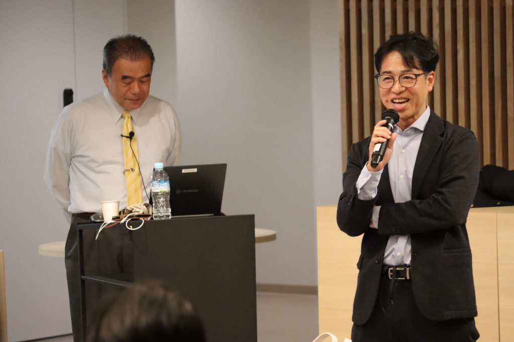 ご講演では、RANKLの発見から特許出願に至る経緯や、Amgenグループとの熾烈な研究競争の逸話を交え、ご紹介いただきました。また近年、RANKL中和抗体は免疫チェックポイント阻害剤との併用療法の効果が注目され、複数の臨床試験が進行中です。こうしたRANKL中和抗体を活用した新たながん免疫療法の可能性についても概説いただきました。最後には、アカデミアと産業界双方での豊富なご経験を基に(特許出願歴は50件!)、産学連携の重要性やキャリアパス形成についても幅広くご講演いただきました。